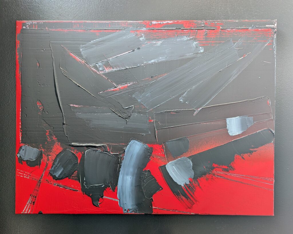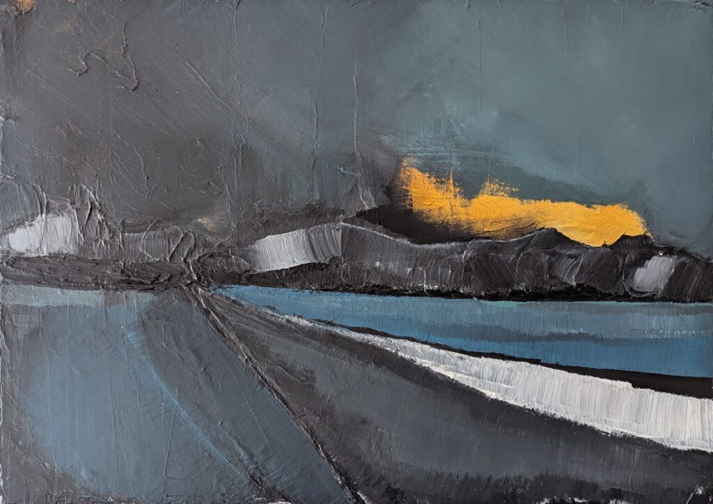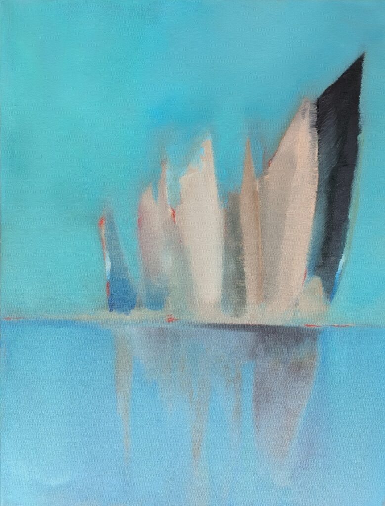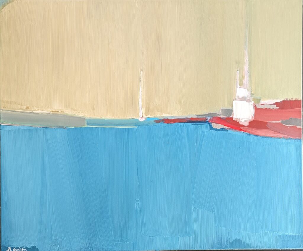 Même si mon domaine de prédilection reste mes compositions abstraites, j’ai toujours éprouvé le besoin d’avoir « mes » arbres à mes côtés. Dessinés, peints, imaginés…parfois à la limite de l’abstraction. Ils sont à mon image, bien enracinés et la tête dans les nuages. Quant à mes paysages, l’abstraction se fond souvent avec le figuratif. Pour certaines toiles, des évidences se dessinent. Pour d’autres, il faut un peu plus se projeter. Alors quelques indices laissent penser à un paysage, comme une couleur, une ligne, ou bien une trace.