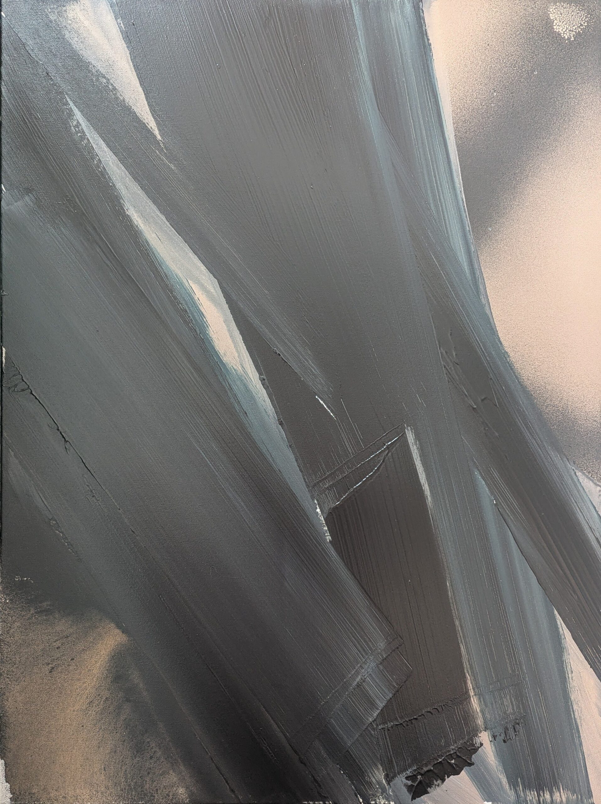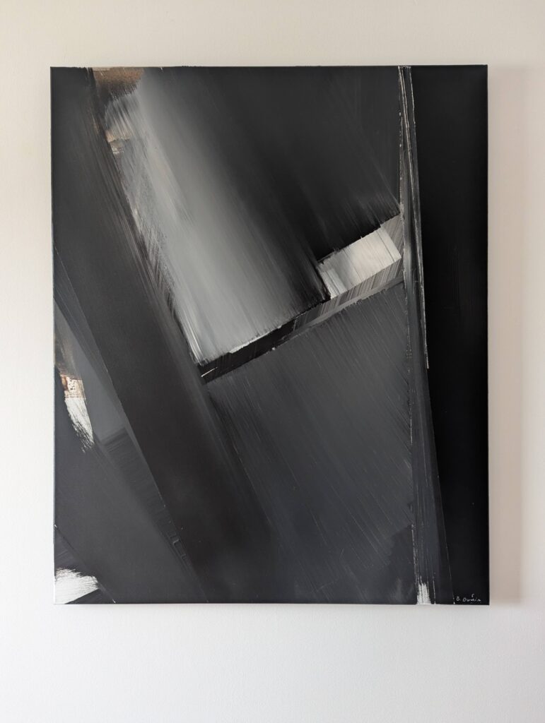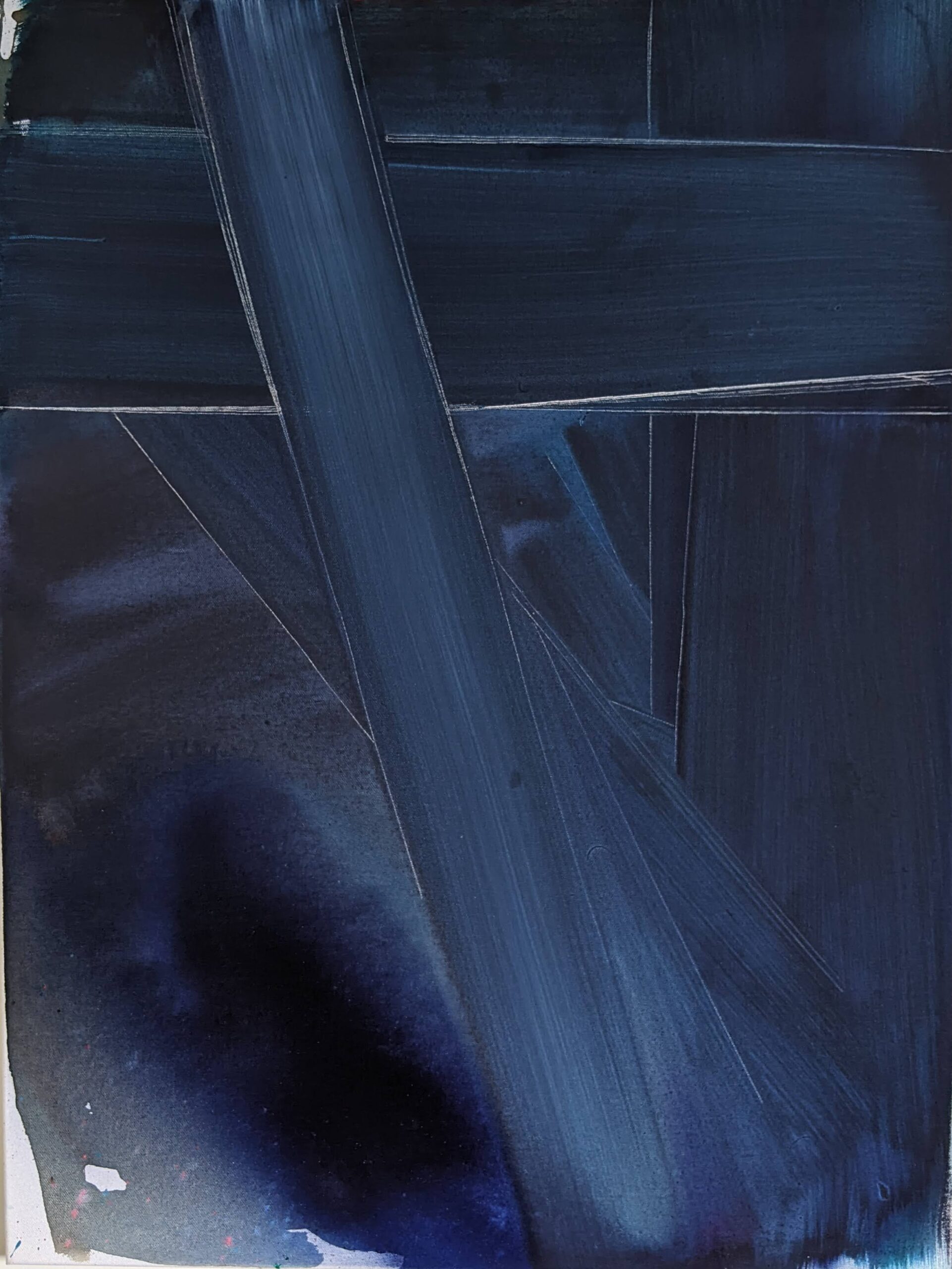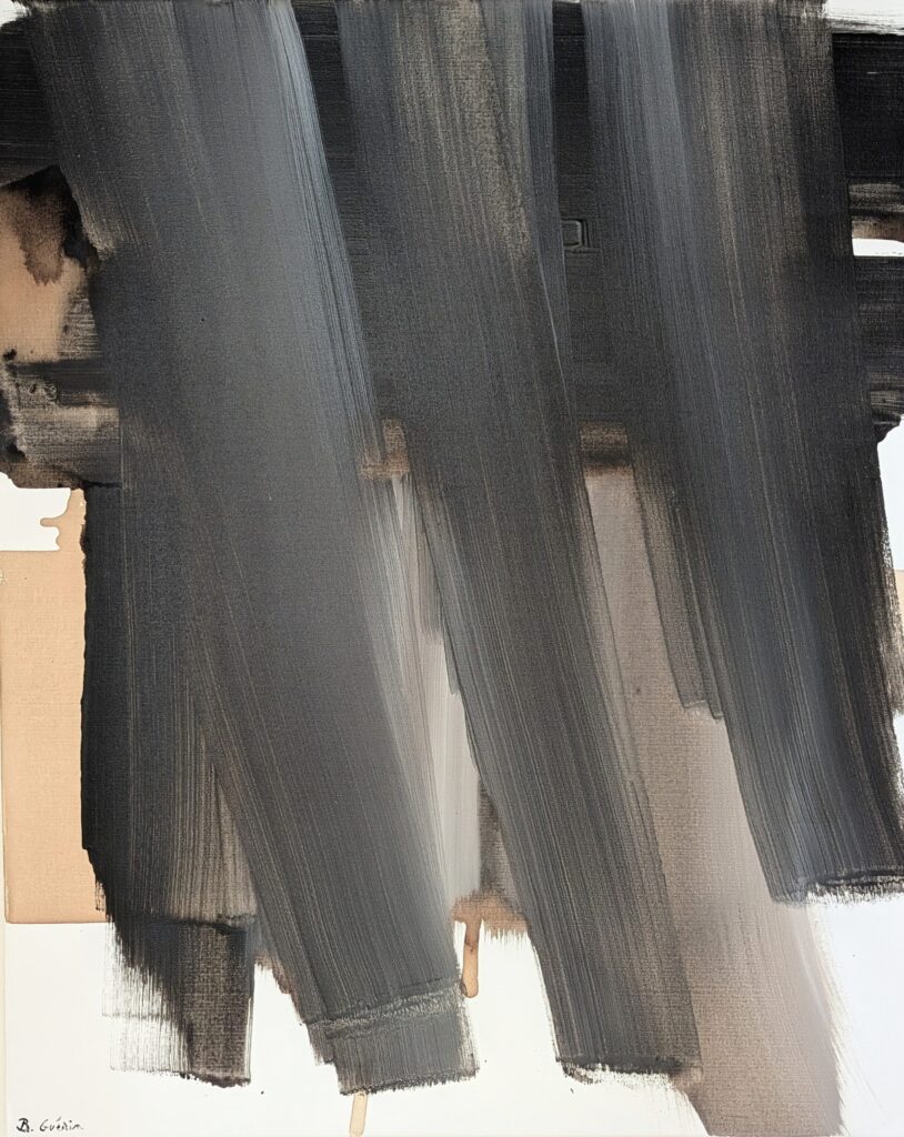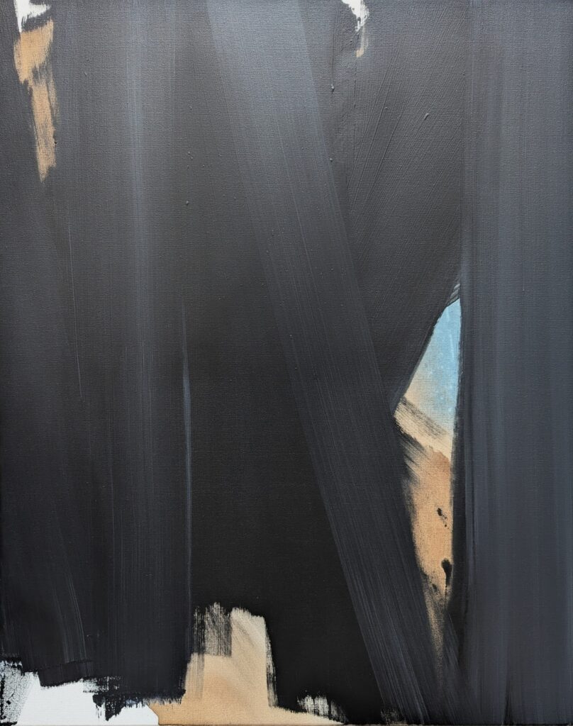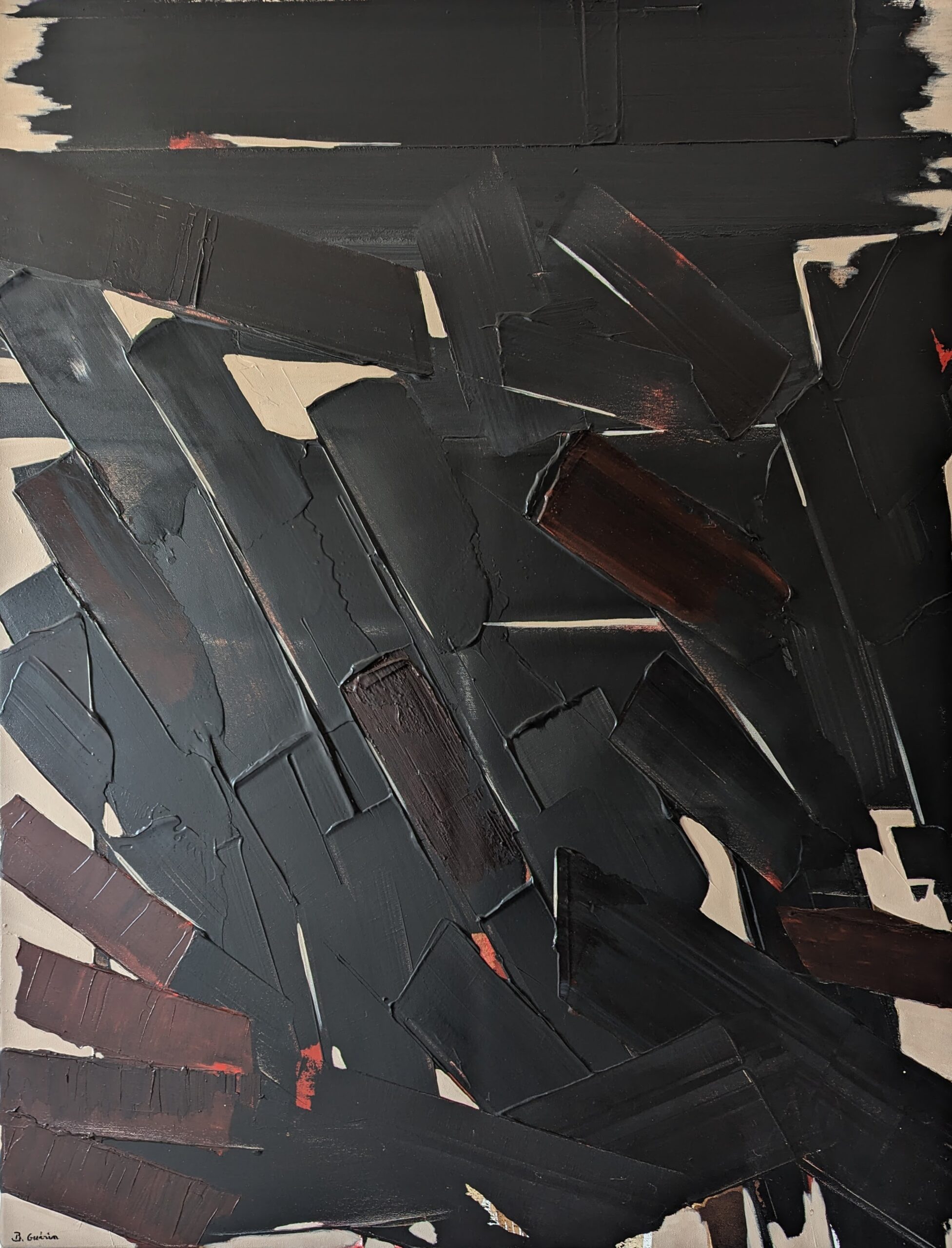 Quand j’ai commencé à peindre, j’ai vite été attiré par le travail de la matière. Les raclages, les écrasements, le jeu de la transparence et de l’opacité, la lumière, guident le geste et structurent mes compositions parfois colorées, souvent noires et bleues. Cette façon de peindre est ancrée au plus profond de moi. Les quelques souvenirs d’un père, artisan plâtrier à “l’ancienne”, ont certainement façonné mon goût pour ce travail de la matière. Blanche pour le père, et noire pour le fils. Comme deux extrêmes qui se rejoignent.