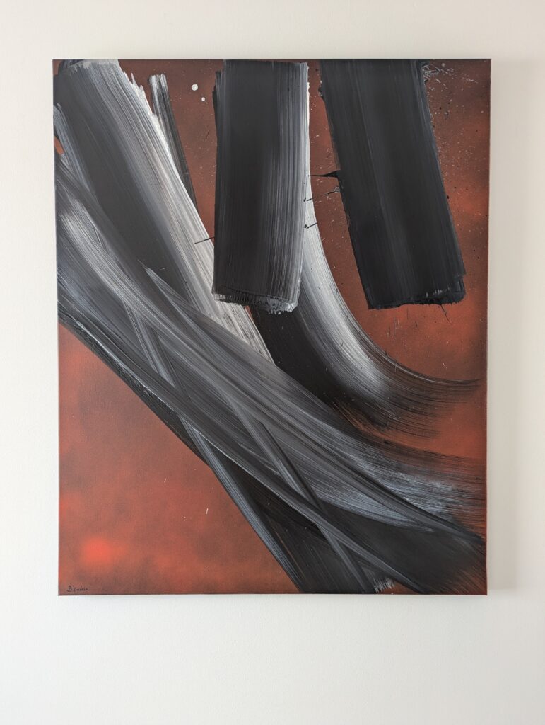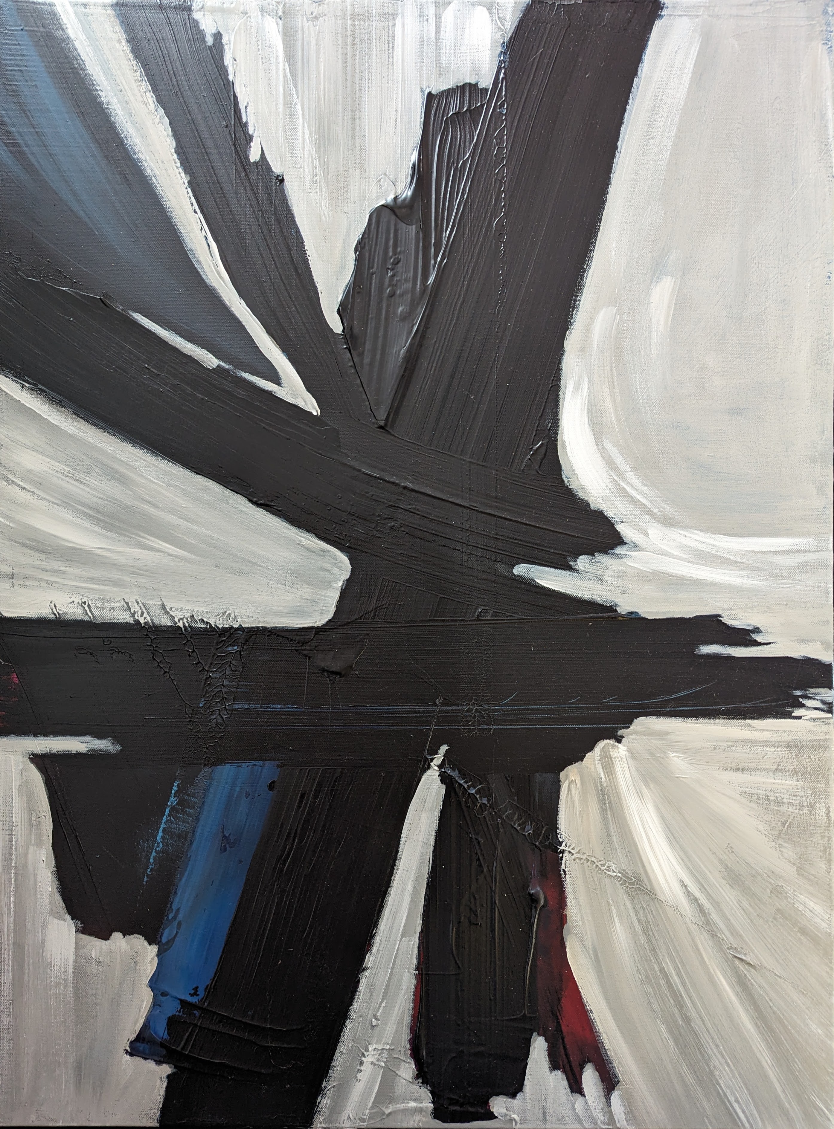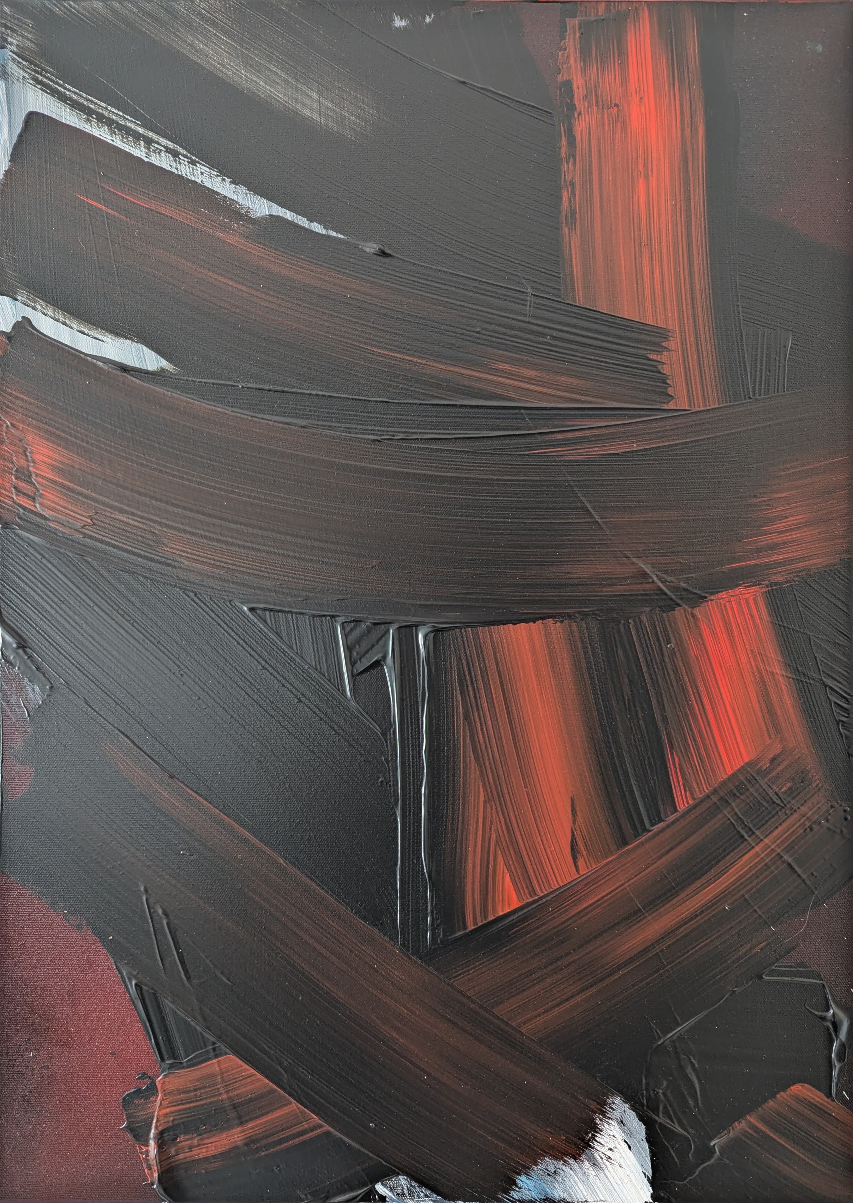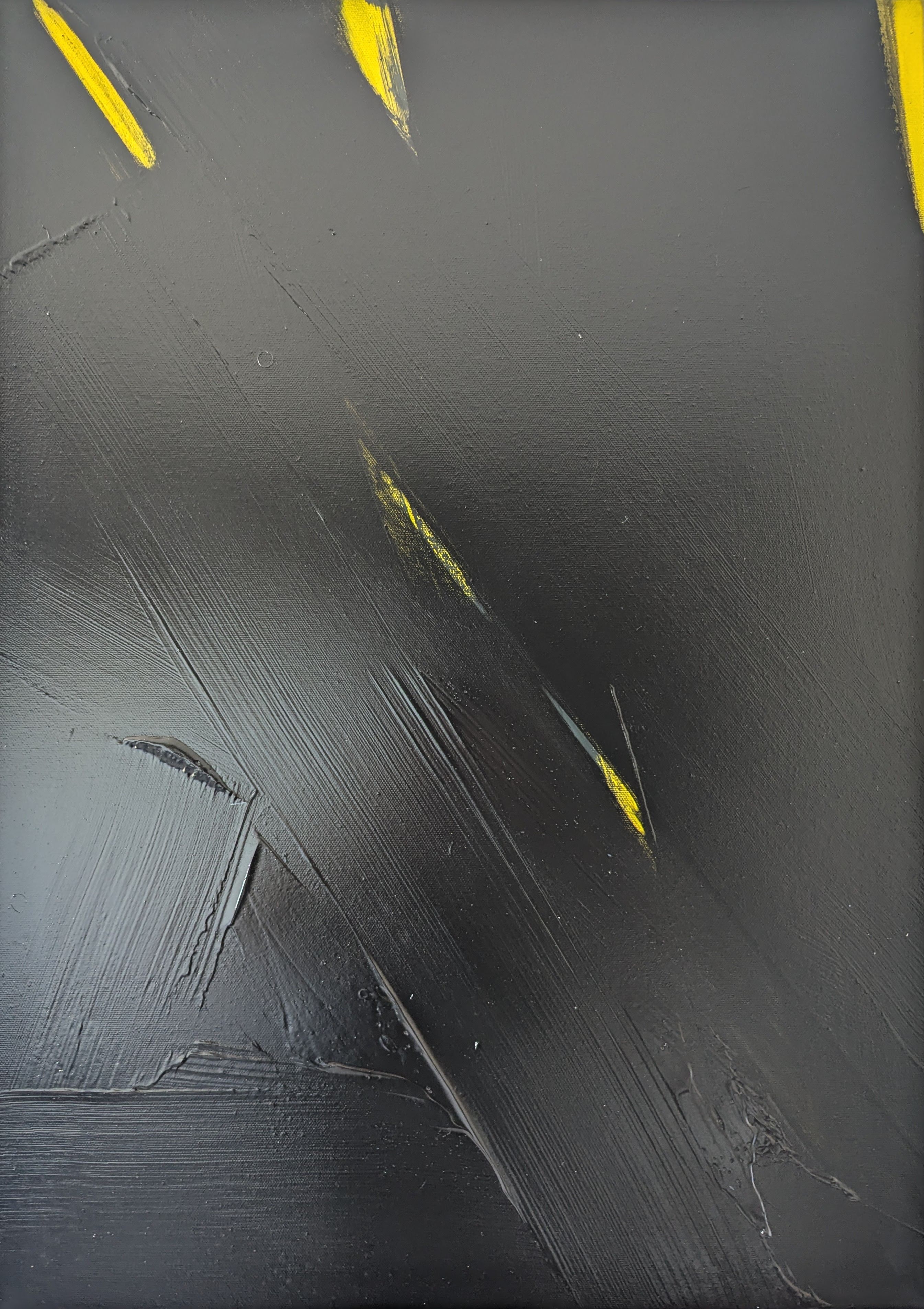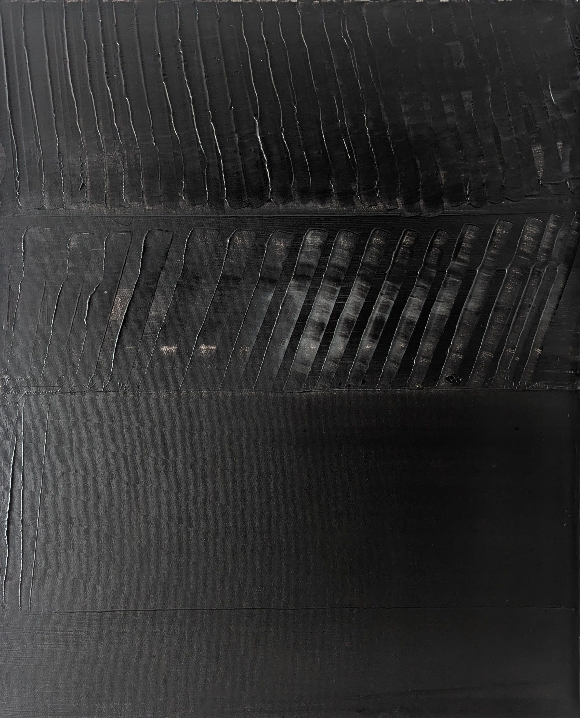 Quand j’ai commencé à peindre, j’ai vite été attiré par le travail de la matière. Les raclages, les écrasements, le jeu de la transparence et de l’opacité, la lumière, guident le geste et structurent mes compositions parfois colorées, souvent noires et bleues. Cette façon de peindre est ancrée au plus profond de moi. Les quelques souvenirs d’un père, artisan plâtrier à “l’ancienne”, ont certainement façonné mon goût pour ce travail de la matière. Blanche pour le père, et noire pour le fils. Comme deux extrêmes qui se rejoignent.